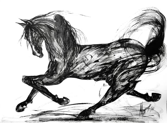 Luis Moscoso's technique is as powerful as his subjects. His dynamic brushstrokes full of movement capture the essence of horses as few artists have ever achieved. The energy and vigor of his brushstrokes create a sense of continuous movement, as if the horses are about to leap off the canvas. This distinctive style not only brings vitality to his work, but also resonates with the emotional intensity of the subjects he explores.
